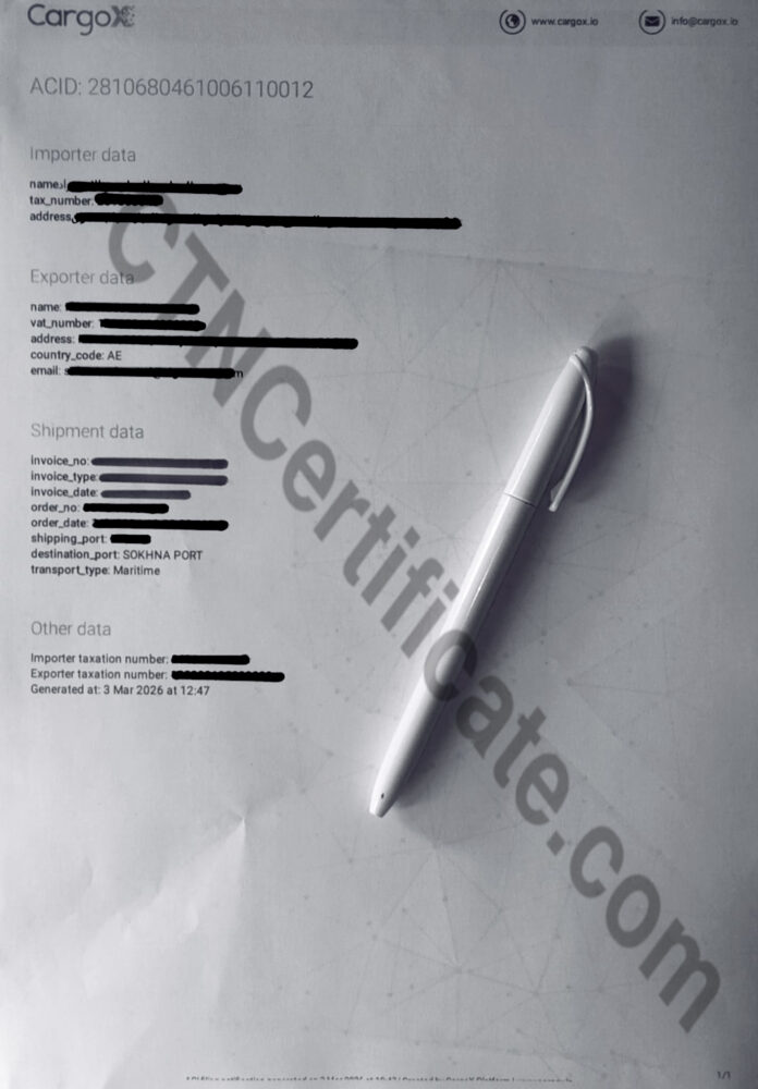- CargoX submission: The exporter registers on the CargoX blockchain platform and uploads the required documents. Filing deadlines are strict: